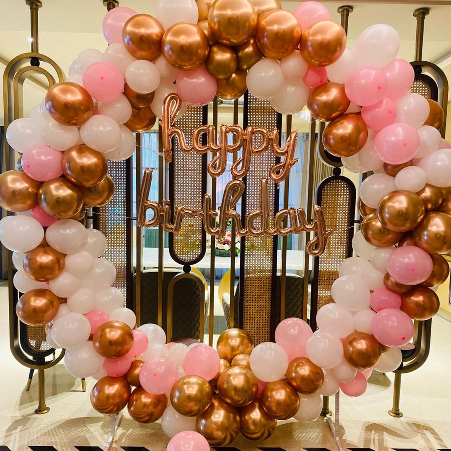Happy Birthday Round Backdrop with Balloons Decor by Party Interest | Delhi Party PlannerHappy Birthday Round Backdrop with Balloons Decor